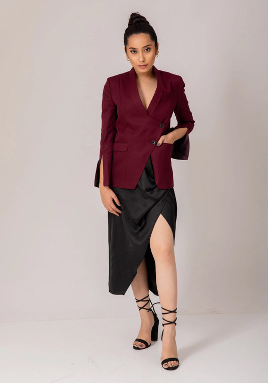Deep Neck Waistcoat With Culottes Set- Maroon