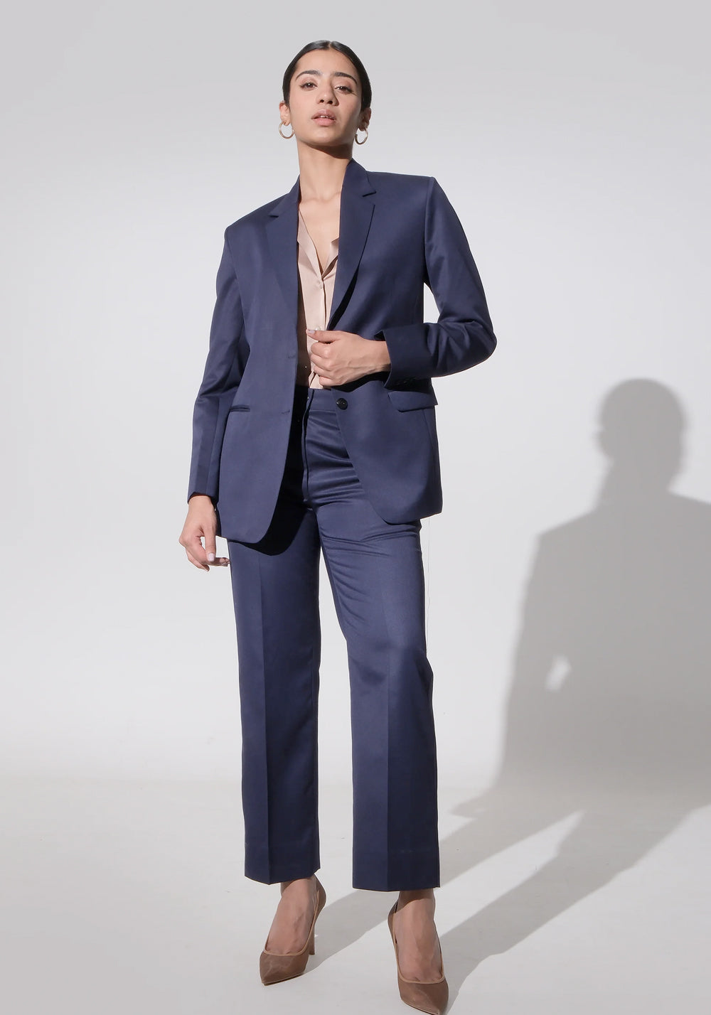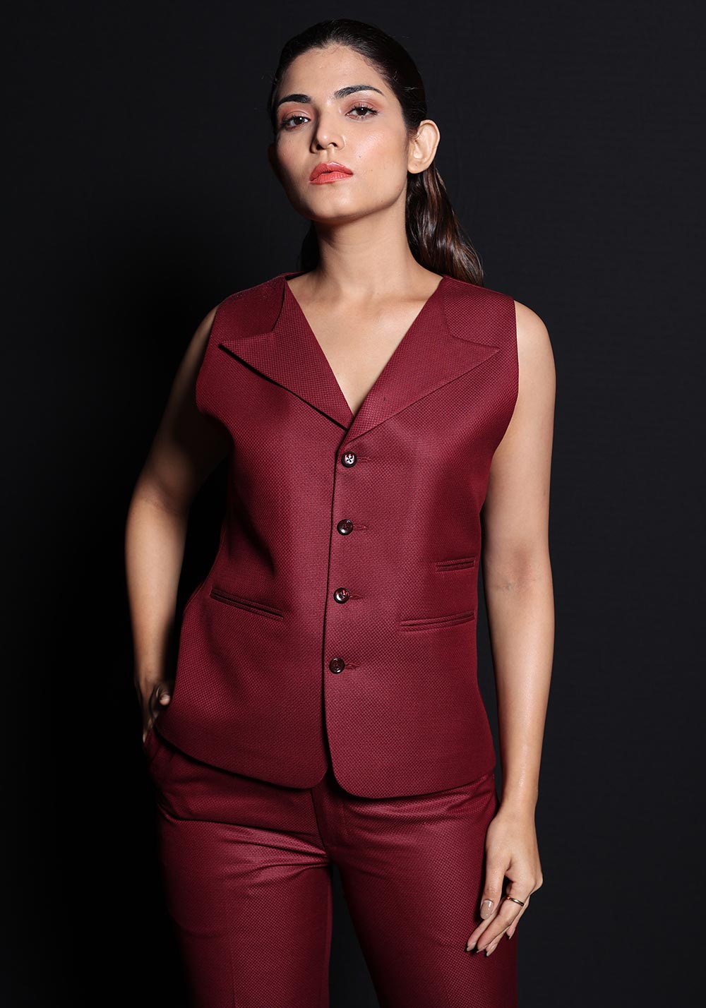 Semi-formal waistcoat with notch collar paired with formal straight fit trouser with front slit.
