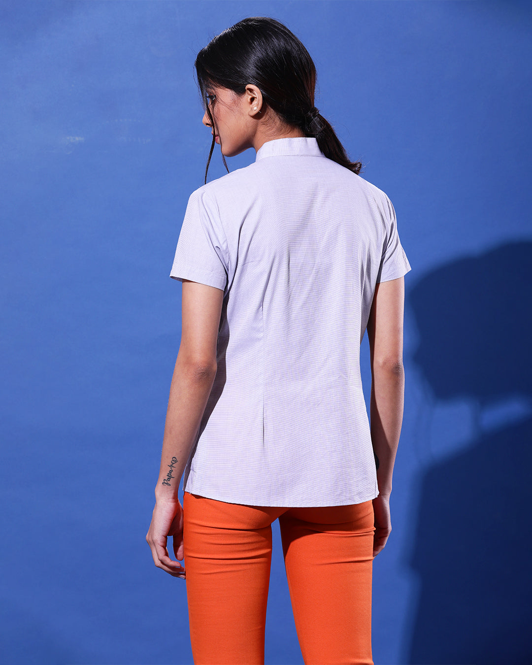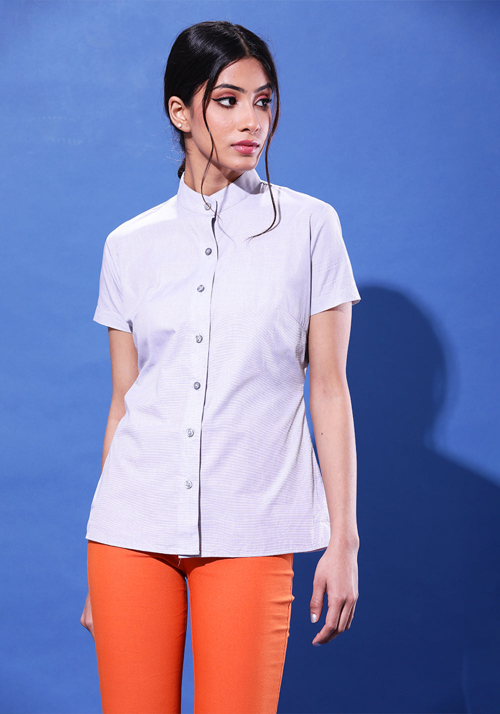 A solid and classic half-sleeved shirt in grey crafted from pure cotton and a structured collar designed for a sophisticated, formal look for everyday wear.