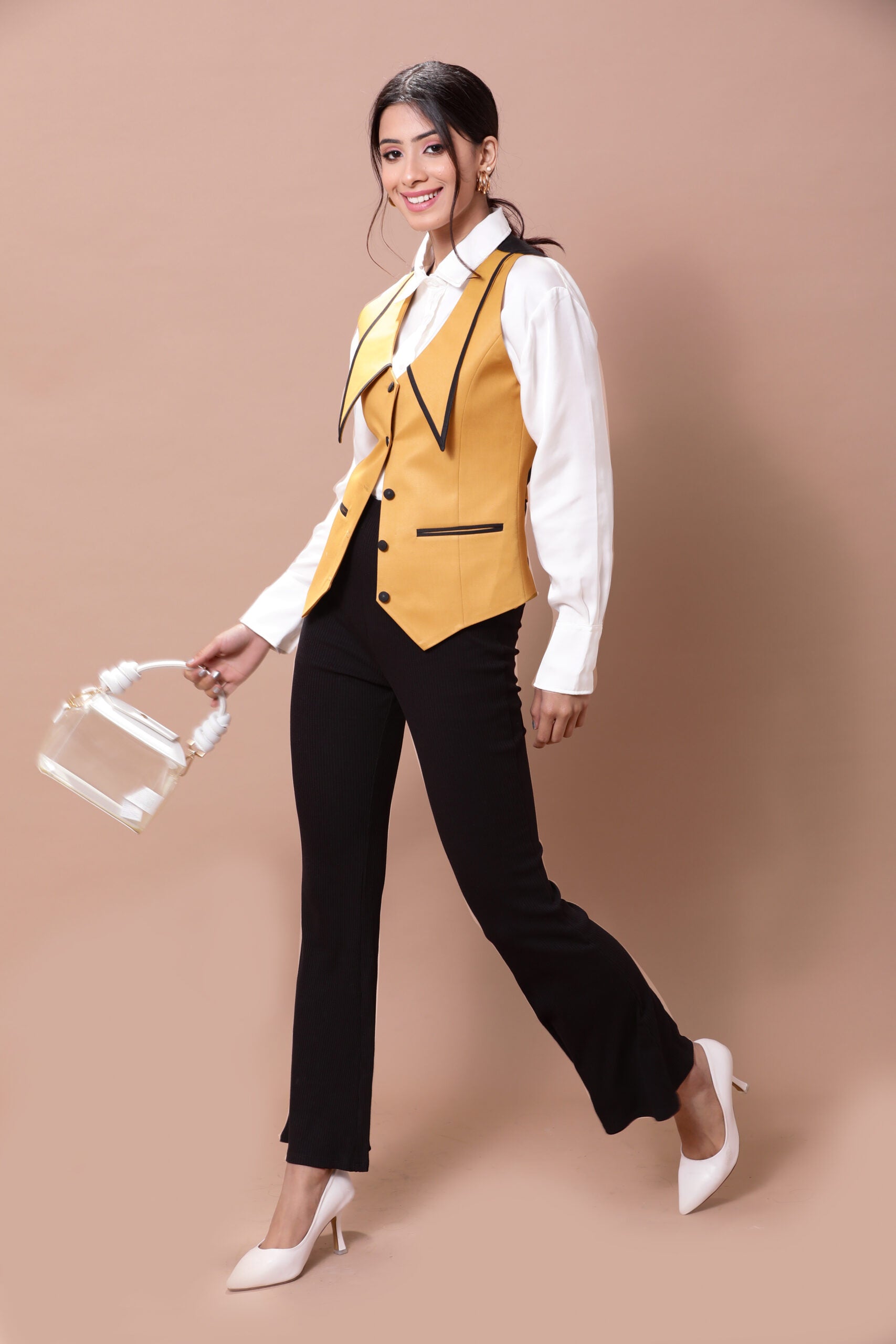 The exaggerated collar and adjustable back gives the outfit a classy and elegant appearance. Combine this collar waistcoat for women in a variety of ways to break free from the stereotype of boring outfit looks.