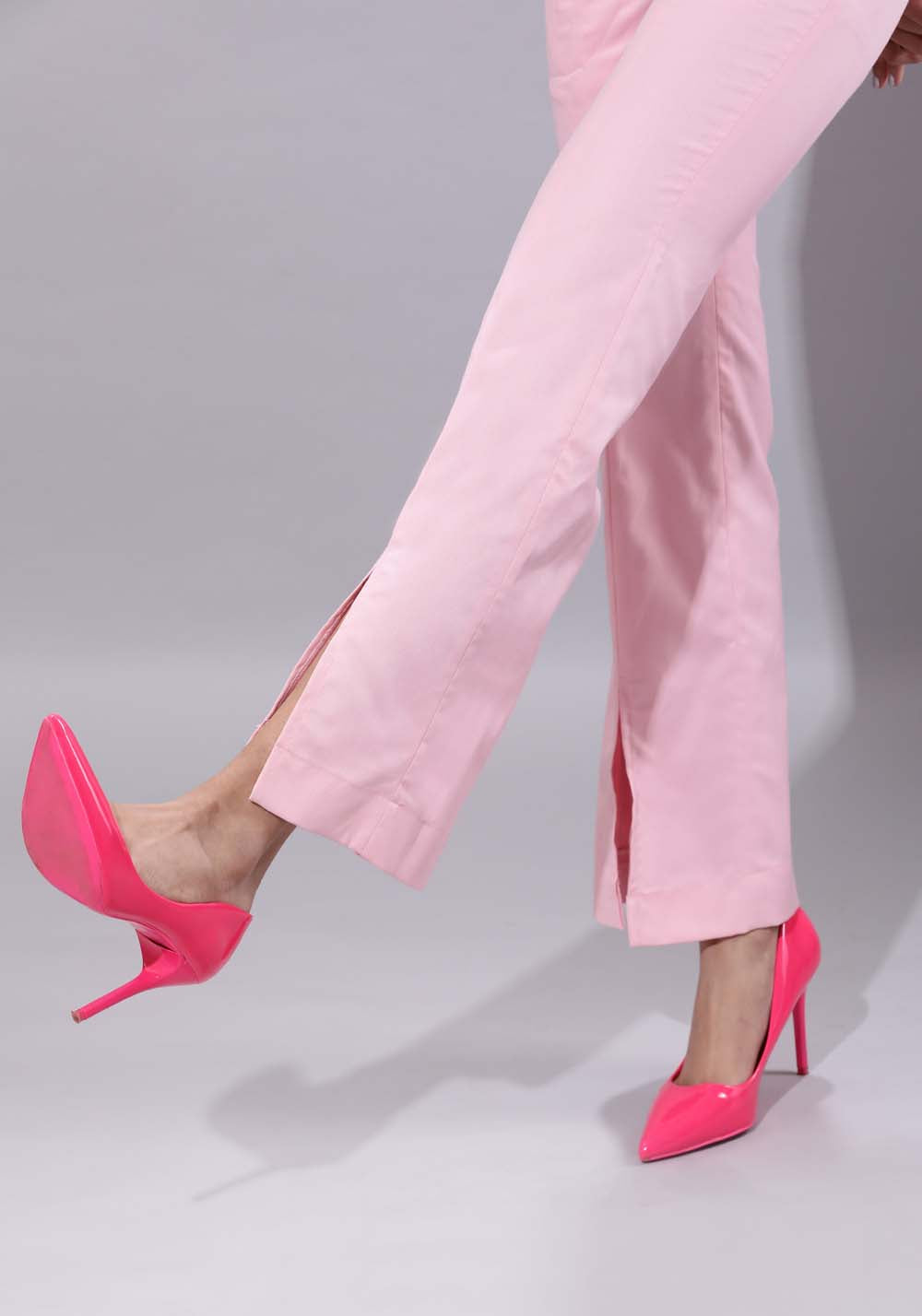 Semi-formal waistcoat with notch collar and welt pockets, paired with formal straight fit trouser with front vents at hem.